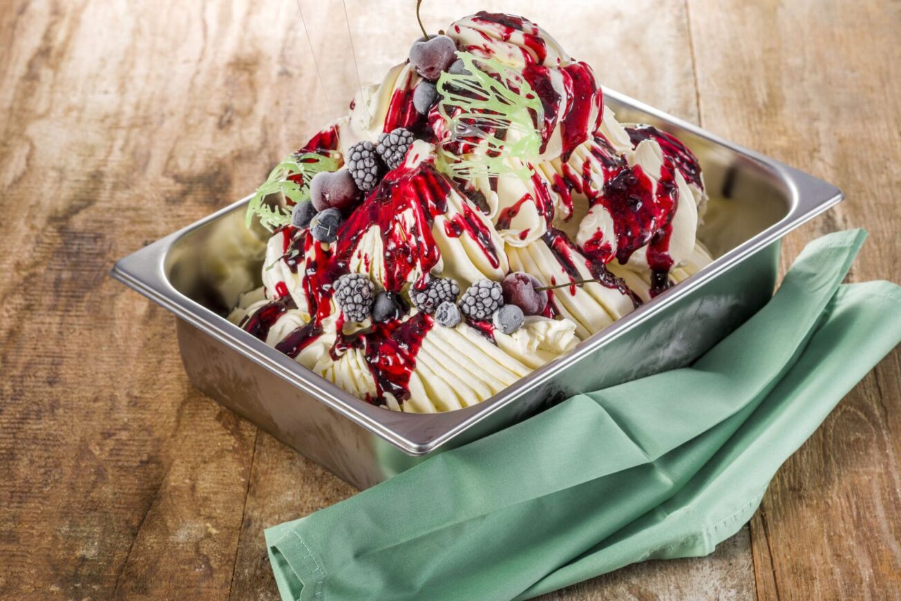 En un mixer o en una licuadora, agrega todos los ingredientes. Saboriza la calda base con la Pasta Saborizante Cream Cheese Specialitá y con el queso ricota y luego continúa el proceso de producción normalmente. Al salir de la productora, mézclalo con Variegato Frutos del Bosque Specialitá.