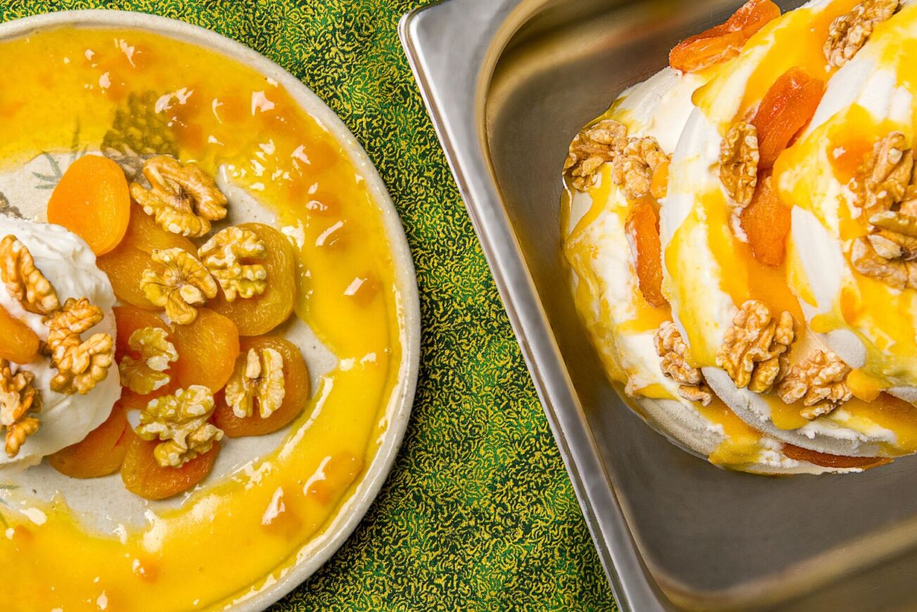 Mezcle el azúcar con el Aqua 5 Algemix y reserve. En la pasteurizadora, cuando la temperatura del agua alcance los 30-40 °C, agrega primero la mezcla de azúcar y Aqua 5 Algemix. A continuación, agrega el resto de los ingredientes para la calda base. Espere a que finalice el proceso de pasteurización. En una batidora o licuadora, mezcle la calda base con la Pasta Saborizante Yogur Griego Specialitá y, a continuación, vierta la calda base saborizada en la máquina de producción. Continúe con el proceso de producción habitual. Al finalizar el proceso, mezcle con lo Variegato Damasco Specialitá.