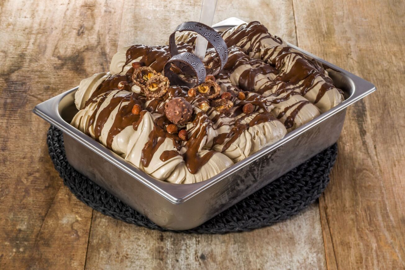 En un mixer o en una licuadora, agrega todos los ingredientes. Saboriza la calda base con la Pasta Saborizante Nocciola Specialitá y luego continúa el proceso de producción normalmente. Al salir de la productora, mézclalo con la Pasta Chocolat Gianduia Specialitá.