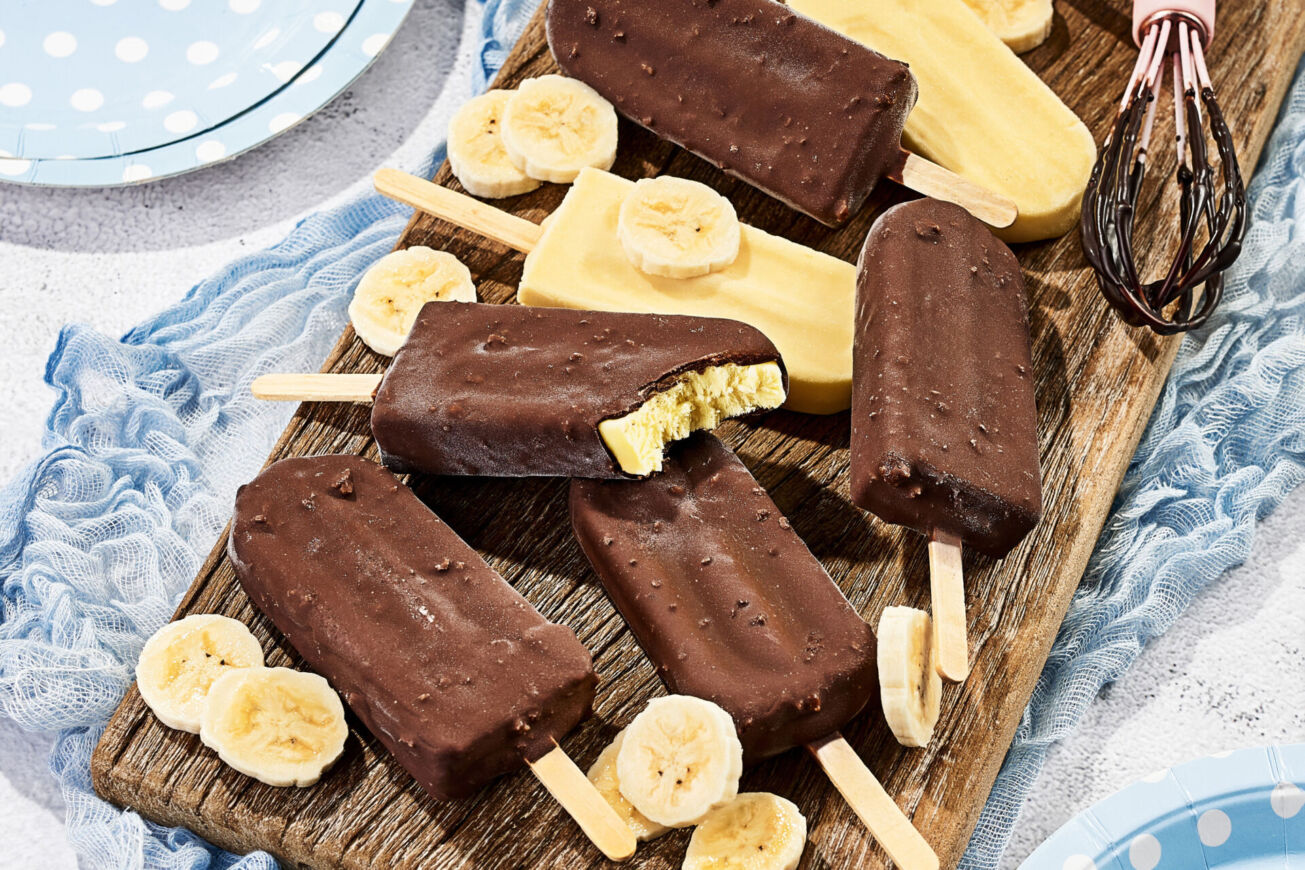 Mezcla el azúcar con el Aqua 5 Algemix y reserva. En la pasteurizadora, cuando la temperatura del agua alcance los 30-40 °C, agrega primero la mezcla de azúcar y Aqua 5 Algemix. A continuación, agrega el resto de los ingredientes para la calda base. Espera a que finalice la pasteurización. En una batidora o licuadora, agrega los ingredientes para preparar el saborizante. Vierte el calda base saborizada en una heladera. Luego, vierte el helado en los moldes para paletas. Es importante mantener el molde en el congelador o en un congelador rápido durante unos minutos antes de empezar a formar las paletas. Introduce el helado en el molde y, con una cuchara o espátula pequeña, alinéalo. Colócalo en el congelador rápido o en el congelador hasta que esté completamente congelado. Finalmente, inserta el palito en el molde. Coloca el molde en el congelador rápido o en el congelador hasta que las paletas estén completamente congeladas y desmóldalas.